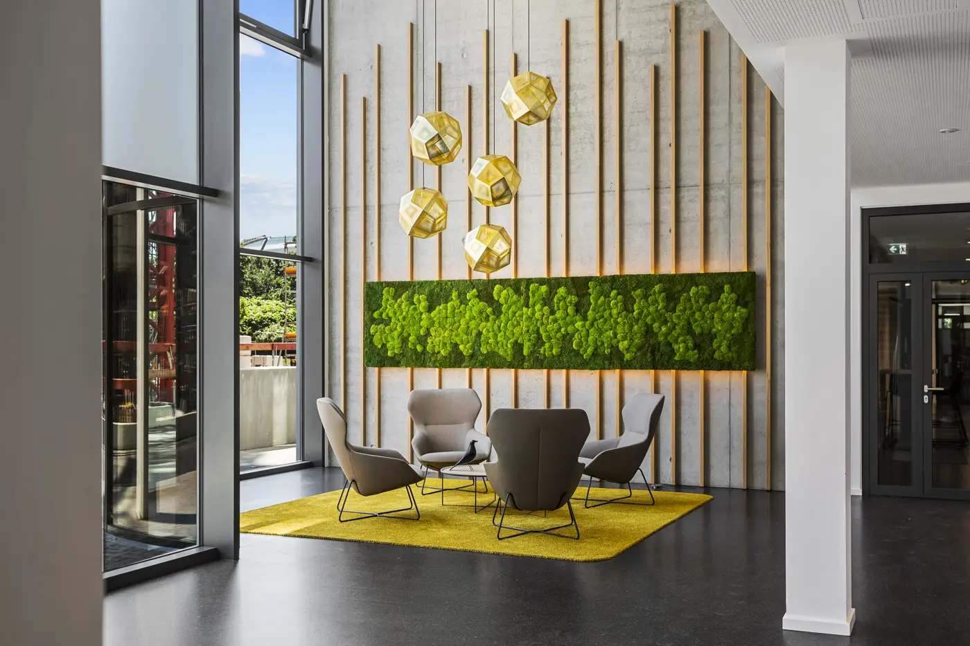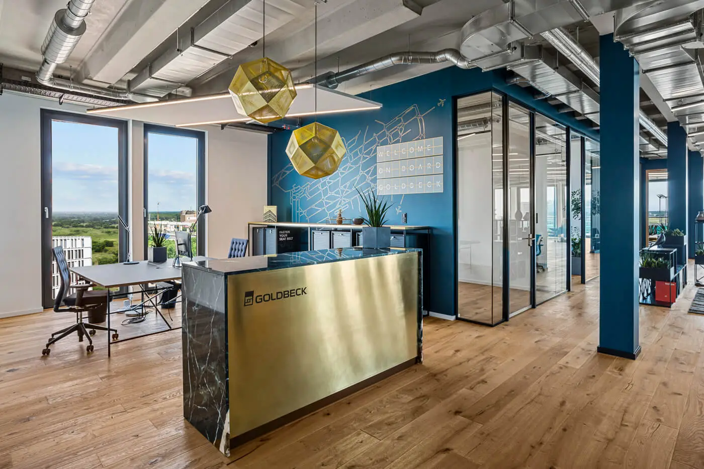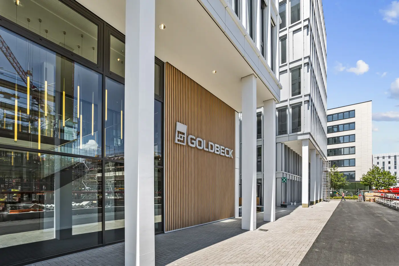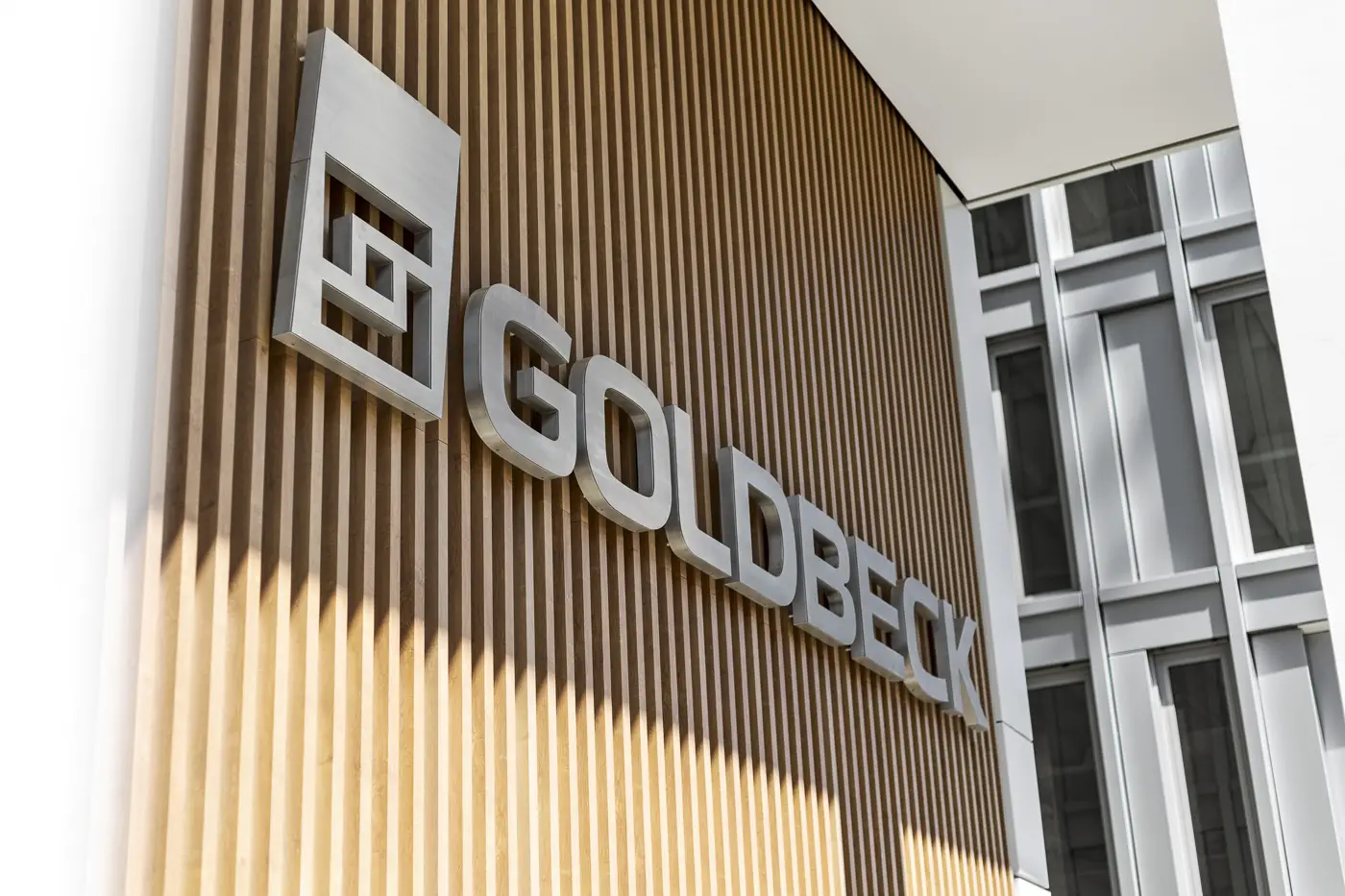 V uplynulých měsících jsme si dali práci a vytvořili nový systém fasádních lamelových prvků, které tvoří hliníkové lamely s dekorační folií v designu dřeva, v centrále společnosti Goldbeck.