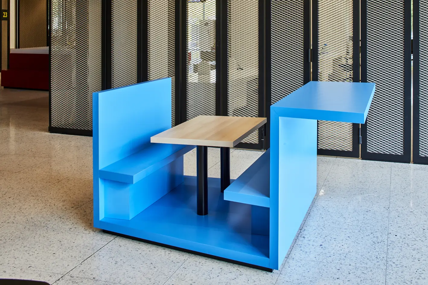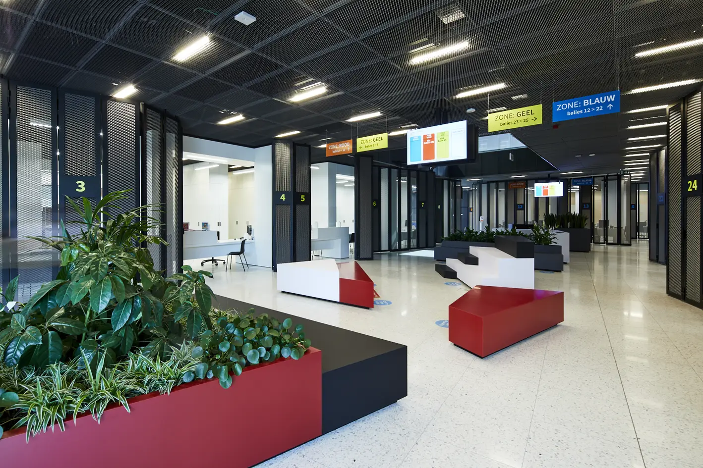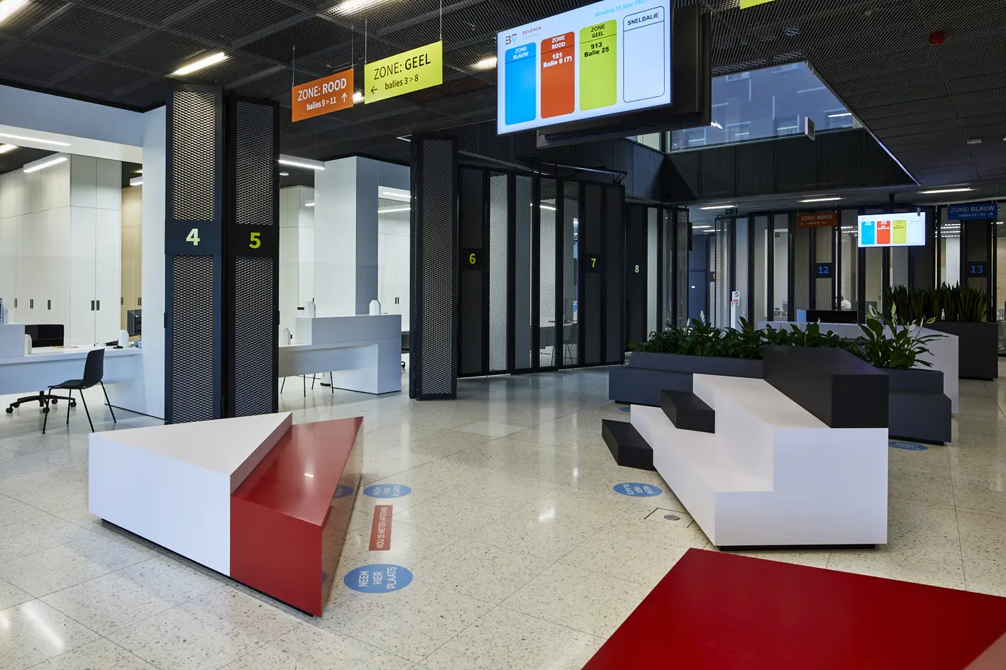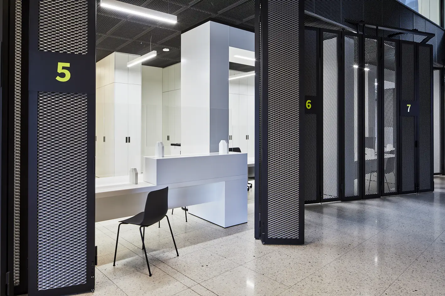 Výroba a montáž nábytku, kancelářských stolů a luxusní recepce z umělého kamene Hi-Macs.Místo: Beveren, BelgieDatum: Prosinec 2020